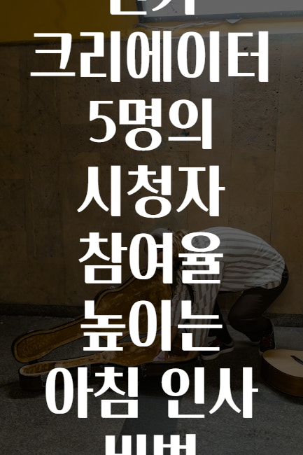 μ¬λ¬λΆ, νΉμ λ§€μΌ μμΉ¨ ν¬λ¦¬μμ΄ν°λ€μ΄ μμ²μμ μν΅νλ λͺ¨μ΅μ λ³΄κ³ λΆλ¬μ λ μ μμΌμΈμ? π²π€© ‘μ μ λλΆμ μΈμ¬λ§ ν΄λ μμ²μκ° λ μ’μν κΉ?’ μΆμ λ, λ°λ‘ κ·Έ λΉλ°μ΄ μ¨μ΄ μμ΅λλ€! π‘ μ€λμ μΈκΈ° ν¬λ¦¬μμ΄ν° 5λͺ μ΄ λ§€μΌ μμΉ¨ μμ²μ μ°Έμ¬μ¨μ λμ΄μ¬λ¦¬λ μμΉ¨ μΈμ¬ λΉλ²β¨μ λ±λ±μ΄ 곡κ°ν κ²μ! μ€λΉλλμ? ππ