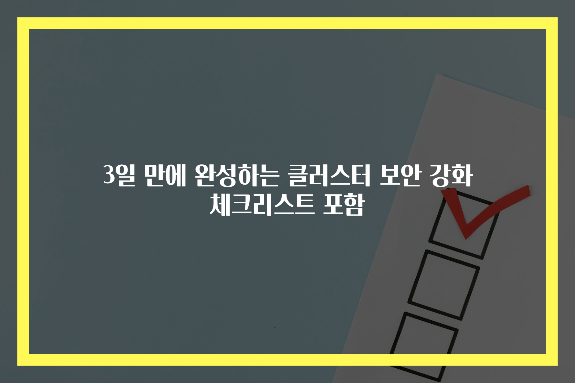 Meta Description: ํด๋ฌ์คํฐ ๋ณด์์ 3์ผ ๋ง์ ๊ฐํํ๋ ์ฒดํฌ๋ฆฌ์คํธ๋ฅผ ์๊ฐํฉ๋๋ค. ์์คํ ์ ๋ฐ์ดํธ๋ถํฐ ์ฌ๊ณ ๋์ ๊ณํ๊น์ง ์ ์ฒด ํ๋ก์ธ์ค๋ฅผ ์๋ดํฉ๋๋ค.